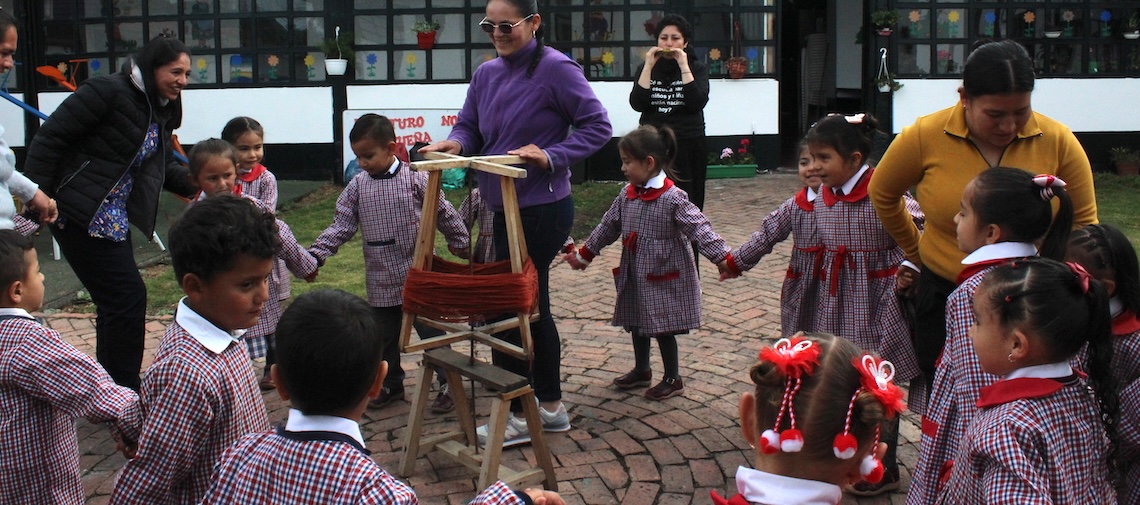 Esta estrategia educativa pertinente lleva a maestras y maestros directamente a los hogares de niñas y niños de 3 a 5 años que no tienen acceso a sedes educativas cercanas en zonas rurales dispersas. Desplazándose hasta los hogares y sus comunidades para ofrecer propuestas pedagógicas adaptadas a cada territorio.