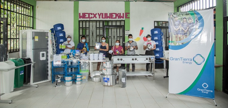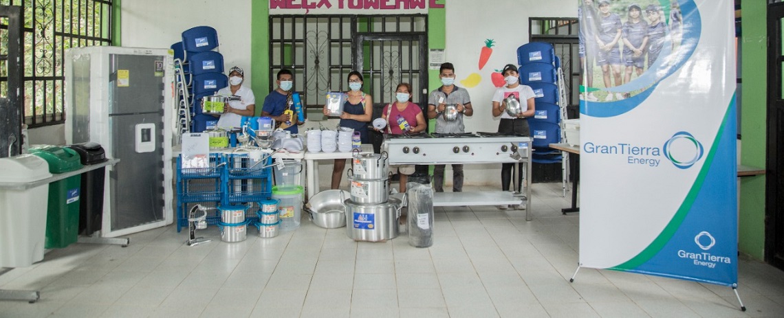 Puerto Caicedo (Putumayo), agosto 19 de 2021. En el marco de la implementación de los Programas de Desarrollo con Enfoque Territorial -PDET, la empresa Gran Tierra Energy entregó dos proyectos adicionales a través del mecanismo de Obras por Impuestos PDET en los municipios de Puerto Caicedo y Orito, Putumayo, los cuales incluyeron dotación de equipos de cocina, incluidos refrigeradores, congeladores y hornos, así como mesas y sillas para 152 cafeterías escolares.
